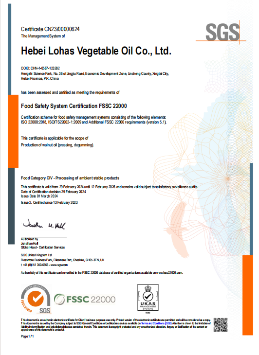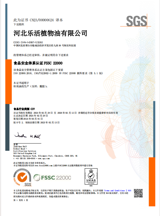 河北樂活植物油有限公司由經營核桃油近20年的河北樂活食品有限公司投資3000多萬元在河北著名核桃產區邢臺臨城興建占地15畝,建筑面積6000平方米,年產能力4000噸核桃油。公司以國際認可的“樂活—LOHAS”健康、持續發展為指導思想,全程不使用任何化學助劑,以歐洲嬰配植物油的標準嚴控各項污染有害物質,是一家專業化、高標準、生產嬰幼兒配方食品用核桃油為主的創新環保科技型企業。